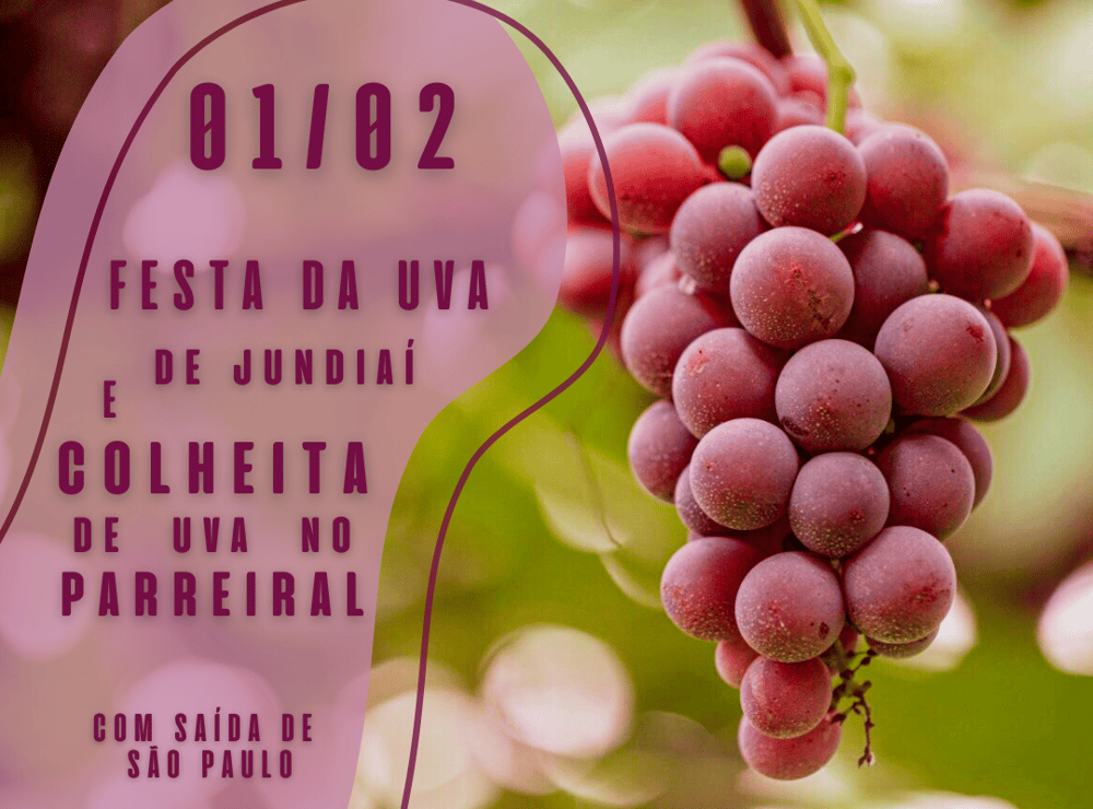 Com saída de São Paulo (Barra Funda), os participantes chegam em Jundiaí e já partem para a vivência do Colha&Pague de Uvas, onde poderão colher uvas fresquinhas diretamente do parreiral. É uma experiência única e sensacional para curtir entre amigos ou família!