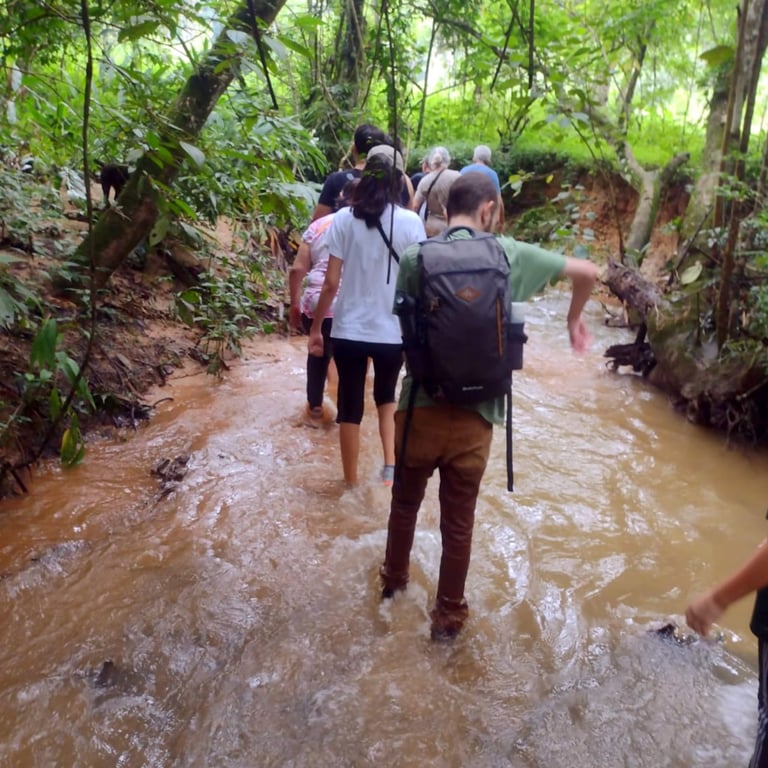 O trajeto é feito em mata fechada, com muitos obstáculos naturais, passando por riachos e nascentes!